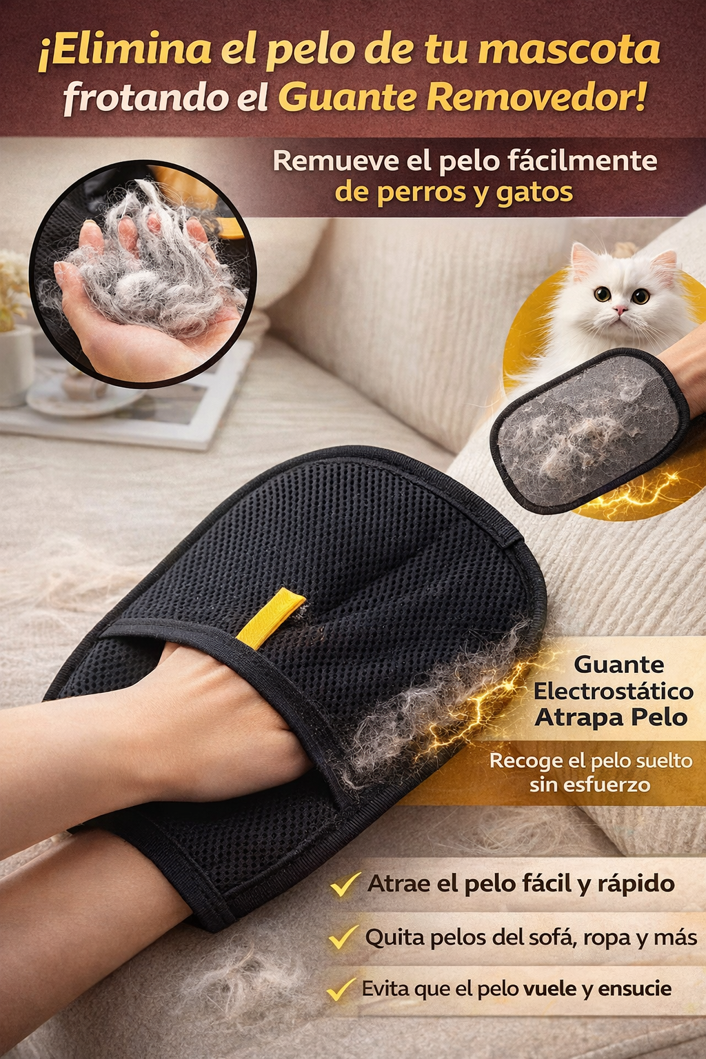 Elimina el pelo de tu mascota de ropa, muebles y alfombras sin esfuerzo.